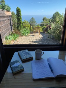 Now more than ever, go outdoors and open your senses wide. Try closing your eyes. What do you hear? Smell? Take off your shoes and find a place to plant your bare feet. As I write, I’m imagining the sensation on my soles of hard-packed sand, cushiony grass, moist and loamy garden soil. Walk among the trees. Press your forehead to the trunk of the redwood and lay yourself down in her duff. If you don’t have a place nearby to forest bathe, look up. On busy days, I like to take what I call “sky breaks” to savor for a moment whatever that immensity above me has to show.