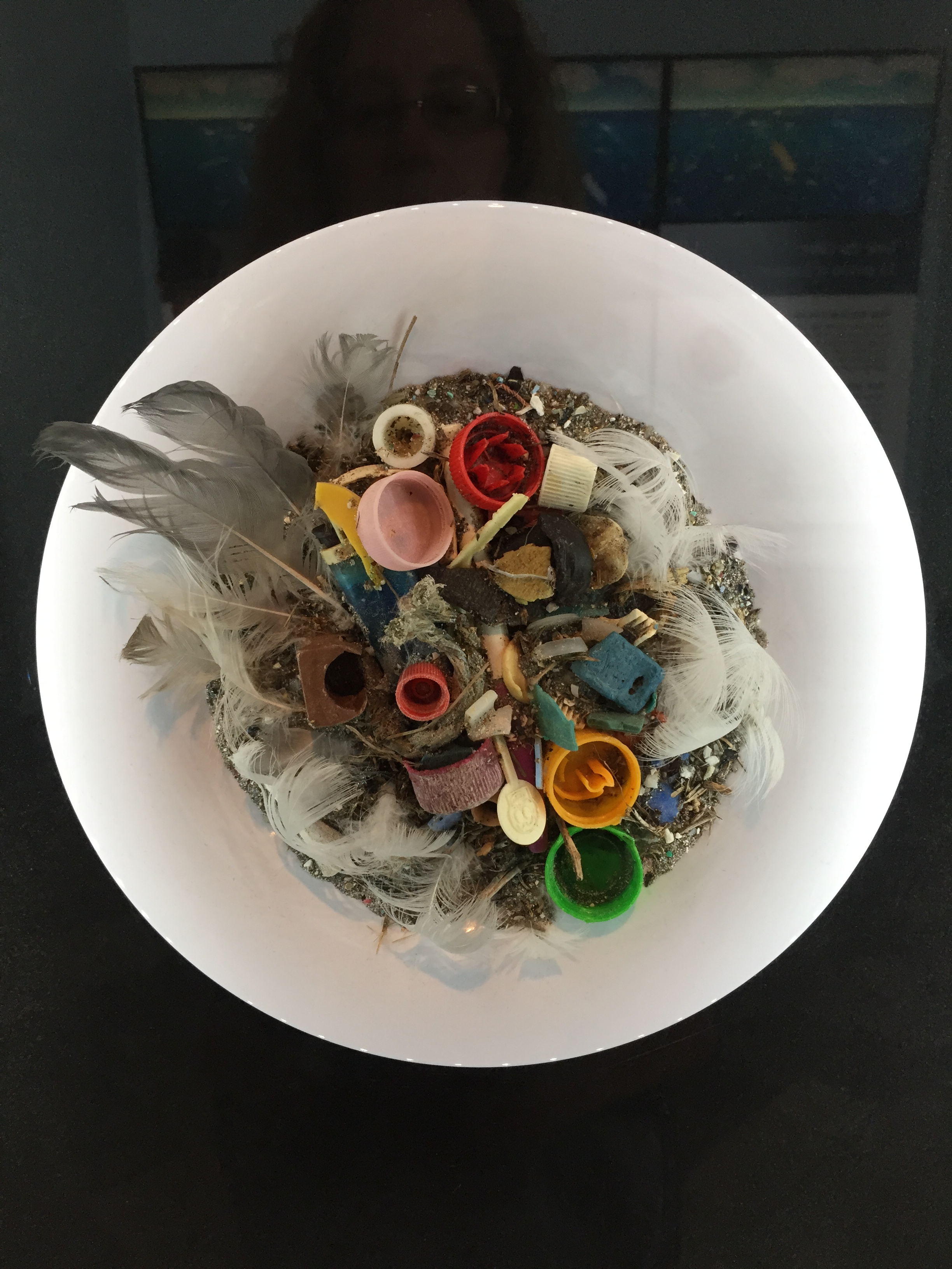These plastic pieces were found in the stomach of a Laysan albatross chick on Midway Island. From an exhibit at the Monterey Bay Aquarium.