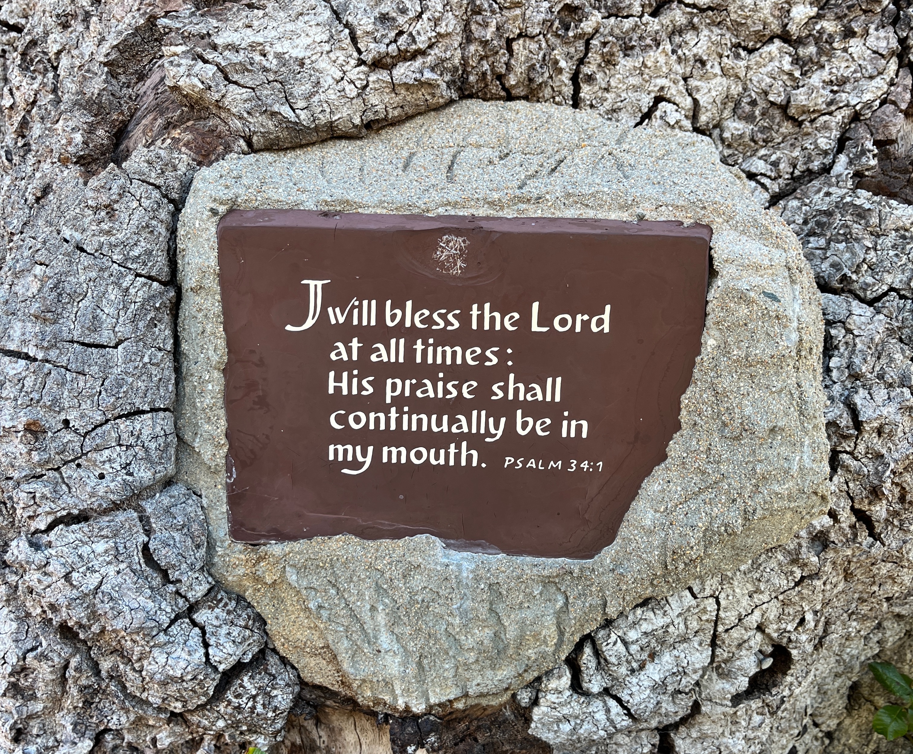 One foggy summer morning while on retreat at New Camaldoli in Big Sur, I took a walk as usual on the road that winds steeply down from the mountaintop monastery to Highway 1. This question of how to pray unceasingly lingered in the back of my mind as the mist and morning sun teased and flirted with each other up and down the mountainside. Along the way is a magnificent oak tree bearing a plaque with a verse from Psalm 34: